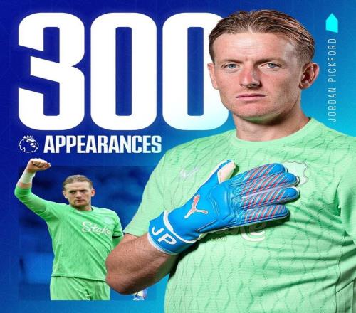 里程碑,皮克福德迎來埃弗頓生涯英超第300次出場