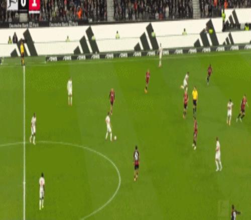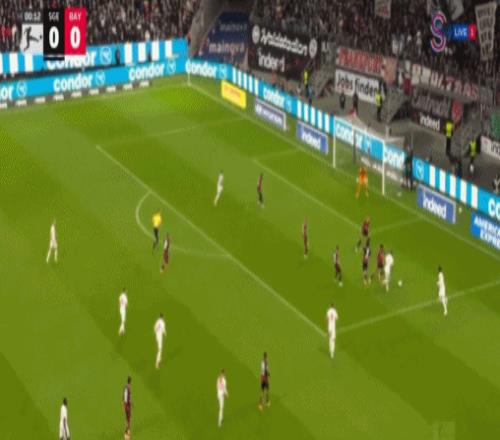 下半場(chǎng),拜仁依然不斷創(chuàng)造機(jī)會(huì)。第54分鐘,凱恩射門,球擊中了立柱。隨著比賽不斷推進(jìn),法蘭克福加強(qiáng)了攻勢(shì),想挽回?cái)【帧5?4分鐘,格雷羅在后場(chǎng)斷球后發(fā)動(dòng)反擊,把球斜傳給從左路插上的迪亞斯,迪亞斯加速甩開(kāi)了防守球員,小角度爆射破門,比分變成3 - 0!