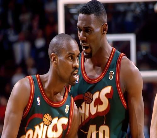 回看超音速隊(duì)史,如果要挑出一支最具代表性的超音速陣容,榜首位置的一定是90年代的“手套+雨人”組合。
