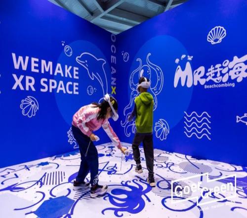市民在歌爾展區(qū)MR大空間體驗(yàn)沉浸式趕海